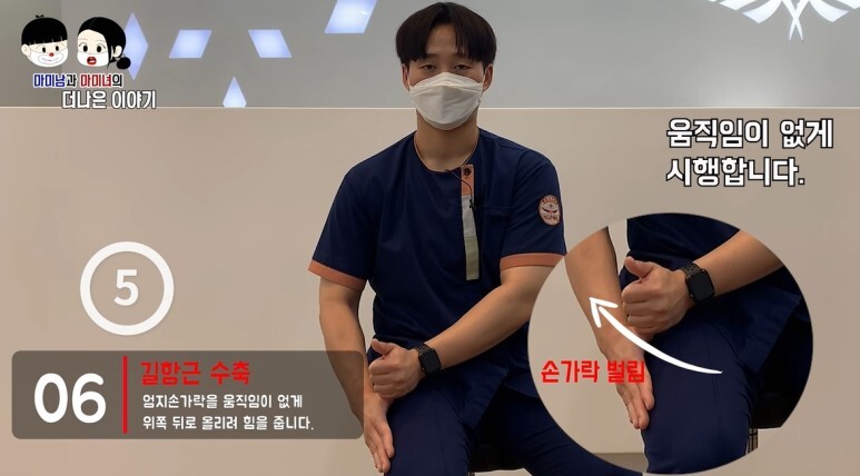손목의 움직임이 없게 하시고, 반대측도 시행해 줍니다.